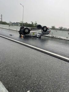 Bán tải lật trên Cao tốc Vân Đồn – Móng Cái đoạn Quảng Nghĩa cũ.