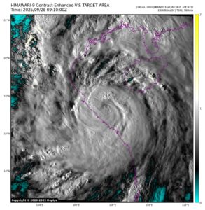 Vào lúc 16h10 ngày 28/9, tâm bão số 10 chỉ còn cách bờ biển Đồng Hới (Quảng Bình) khoảng 115km về phía Đông – Đông Nam, cách Vũng Chùa – Đảo Yến khoảng 135km.