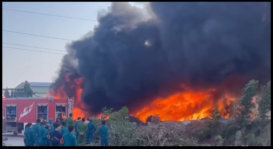 Clip cháy xưởng bông ở Phương Nam cũ, nay là phường Yên Tử.