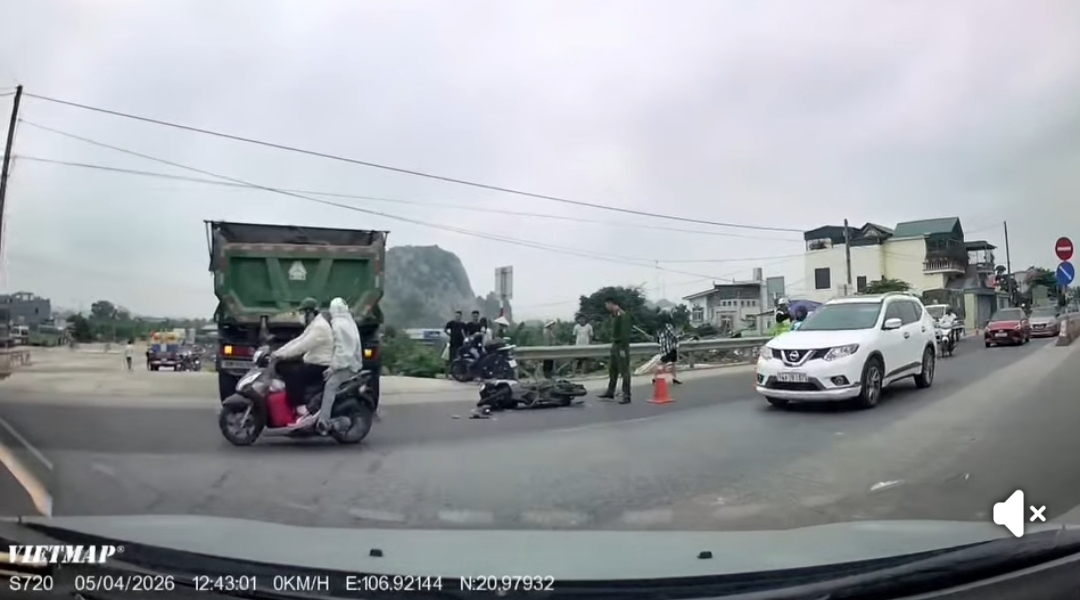 Clip hiện trường vụ va chạm giữa xe máy và xe tải ở Đại Yên.