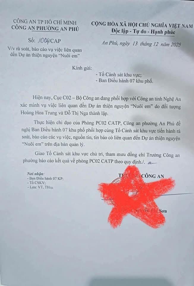 Công an vào cuộc xác minh Dự án thiện nguyện “Nuôi em”