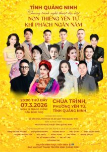Tối 20h00, thứ Bảy ngày 07/3/2026 (tức 19 tháng Giêng năm Bính Ngọ), tại Chùa Trình, phường Yên Tử, tỉnh Quảng Ninh sẽ diễn ra Chương trình nghệ thuật đặc biệt với chủ đề “Non thiêng Yên Tử – Khí phách ngàn năm”. Sự kiện do Sở Văn hóa, Thể thao và Du lịch tỉnh Quảng Ninh chỉ đạo nội dung, Nhà hát Nghệ thuật tỉnh Quảng Ninh thực hiện, được truyền hình trực tiếp trên QTV – Báo và Phát thanh Truyền hình Quảng Ninh.