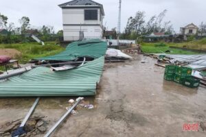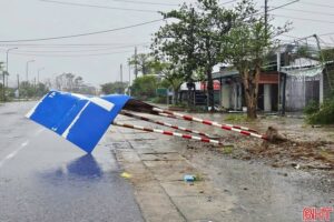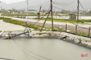 • Hà Tĩnh: Hai cột điện đổ sau bão số 10, lộ phần sắt hộp, công an vào cuộc