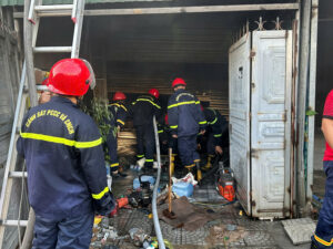 Tại thời điểm lực lượng chức năng có mặt, đám cháy đang bùng phát mạnh tại tầng 1 của ngôi nhà. Do cửa cuốn đóng kín, việc tiếp cận hiện trường gặp nhiều khó khăn. Trước tình hình trên, lực lượng PCCC&CNCH đã nhanh chóng sử dụng máy cắt, xà beng, búa tạ để phá cửa, tiếp cận bên trong, triển khai các mũi tấn công trực tiếp dập lửa. Đồng thời, thang chuyên dụng được bố trí nhằm kiểm soát và ngăn chặn nguy cơ cháy lan lên tầng 2 và các khu vực xung quanh.