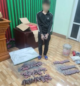 Theo đó, vào hồi 19 giờ ngày 17/12/2025, tại khu phố Miếu Thán – Đồng Bống, phường Vàng Danh, Phòng Cảnh sát kinh tế Công an tỉnh Quảng Ninh chủ trì, phối hợp với Công an phường Vàng Danh tiến hành kiểm tra và phát hiện đối tượng H.M.H đang vận chuyển một bao tải dứa, bên trong chứa 7,9kg pháo nổ, pháo hoa nổ các loại. Qua làm việc, H.M.H khai nhận đã lên mạng xã hội Facebook tìm hiểu cách chế tạo pháo, sau đó mua các loại nguyên liệu như hoá chất làm thuốc pháo, dây cháy… để tổ chức sản xuất pháo nhằm mục đích tiêu thụ kiếm lời. Khi đang vận chuyển số pháo trên đi bán thì bị lực lượng Công an phát hiện, bắt giữ.
