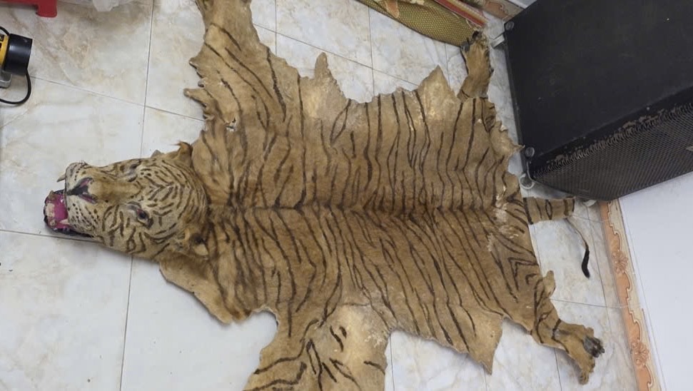 Tại thời điểm kiểm tra, lực lượng chức năng phát hiện và thu giữ 01 bộ da Hổ (Panthera tigris) còn nguyên vẹn, gồm đầy đủ phần đầu, da thân và các chi. Đây là loài động vật hoang dã nguy cấp, quý, hiếm được ưu tiên bảo vệ theo quy định của pháp luật.