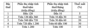 Biểu thuế luỹ tiến từng phần được quy định như sau: