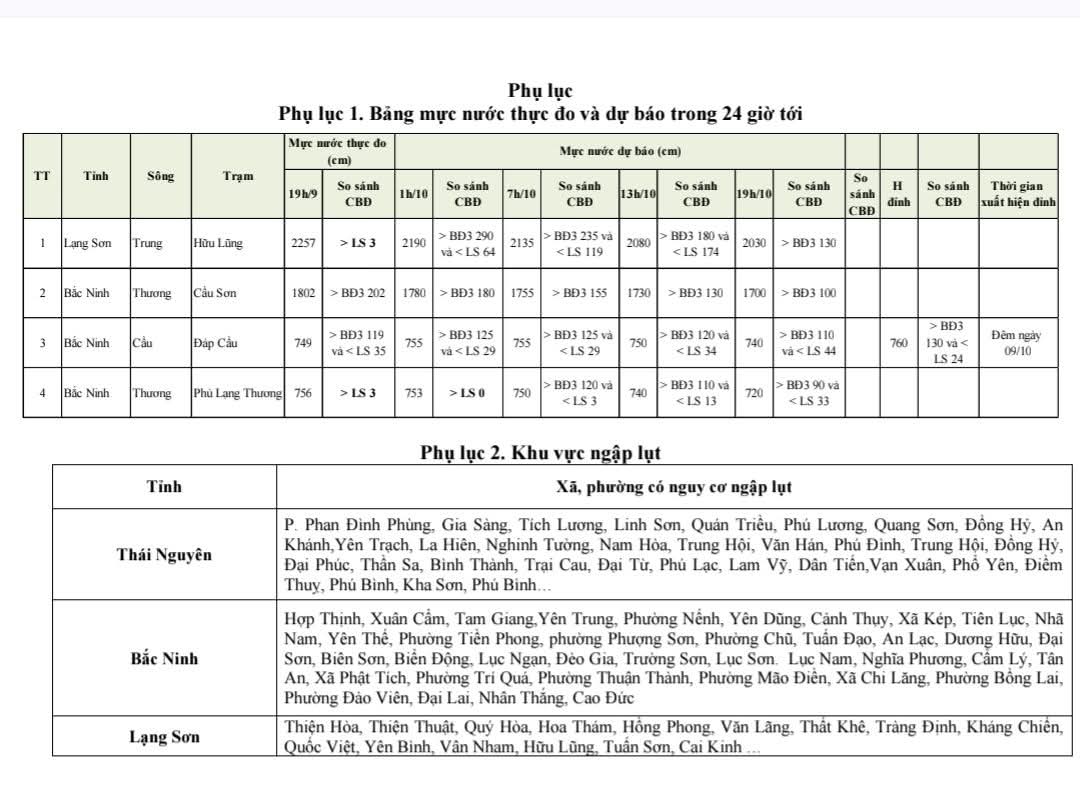 Các tỉnh Thái Nguyên, Bắc Ninh, Lạng Sơn vẫn đang trong tình trạng ngập lụt diện rộng, dự kiến kéo dài 2–3 ngày tới.