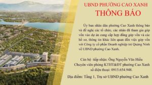 UBND phường Cao Xanh thông báo tiếp nhận hồ sơ dự án Đồi Chè