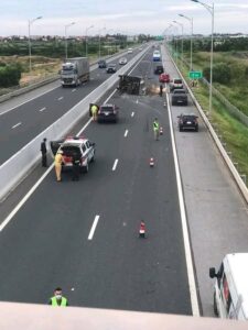 Video cận cảnh xe lật trên cao tốc Hạ Long-Hải Phòng.