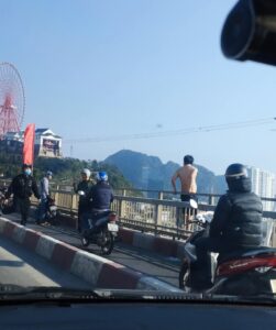 Video hình ảnh cận cảnh người đàn ông đứng từ chiều trên cầu Bãi Cháy.